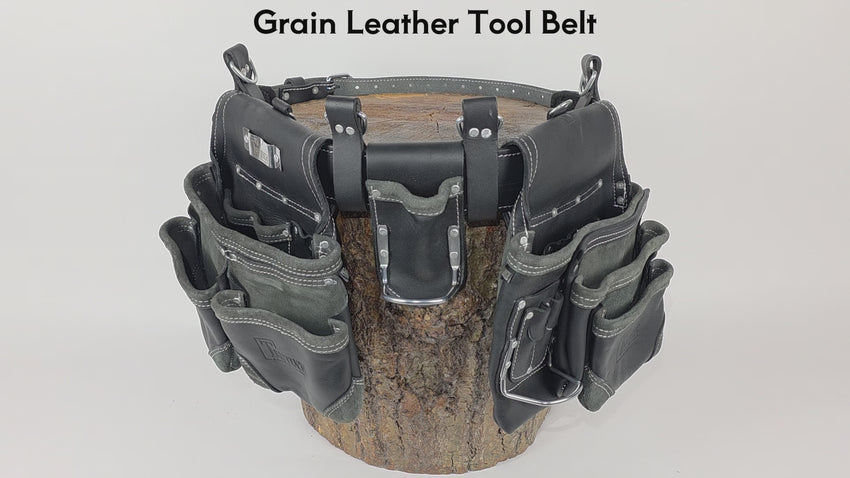 - This Leather Carpenter Tool Belt is 100% Genuine Grain Leather with Thickness of 2.50 mm. Tool Belt Leather is Carrying Total 18 Pockets. 2 Large Capacity Tool Belt Pouches, one side has Double Pockets,1 Padded Belt, 2 Metal Hammer Holders & Additional small Pockets so you can carry a large number of Tools in this Leather Tool Bag.